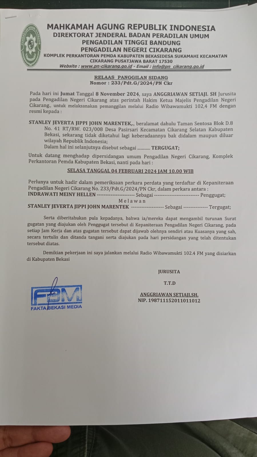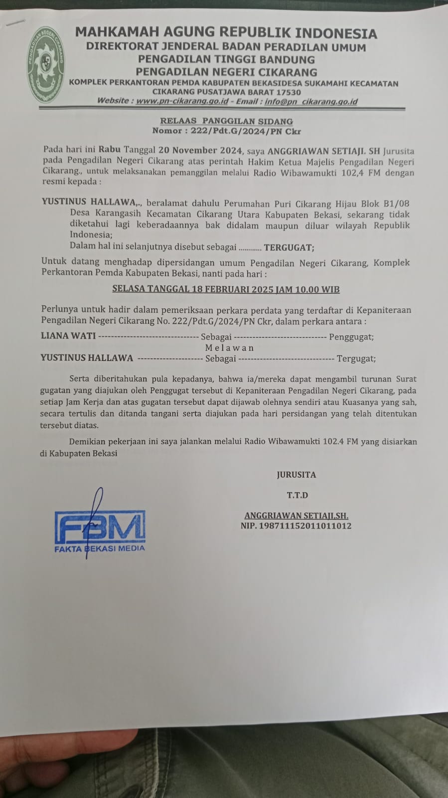 Informasi dan pengumuman resmi dari Pengadilan Negeri Cikarang