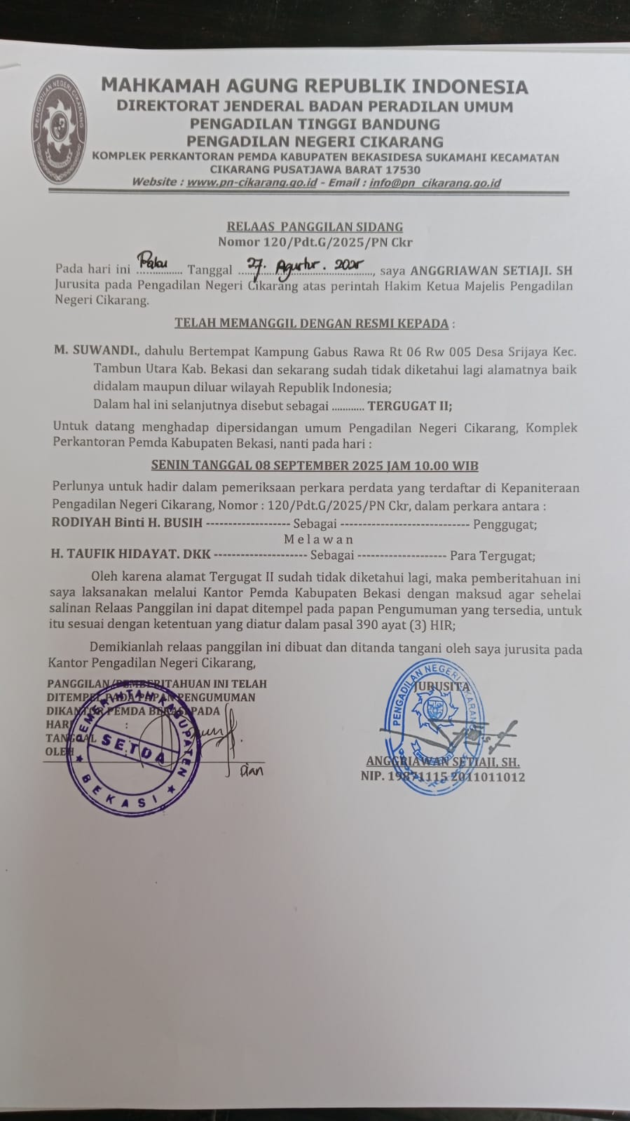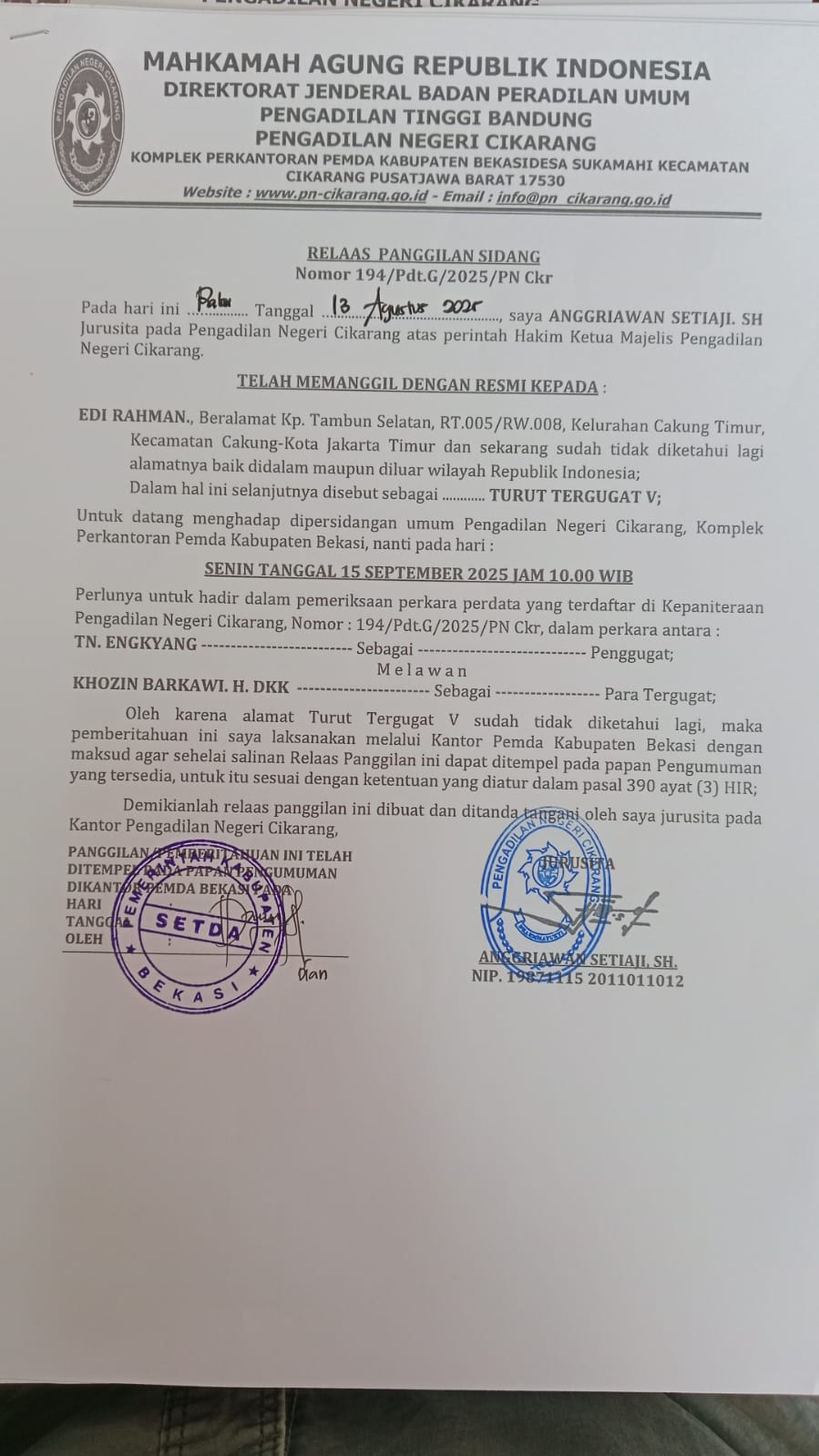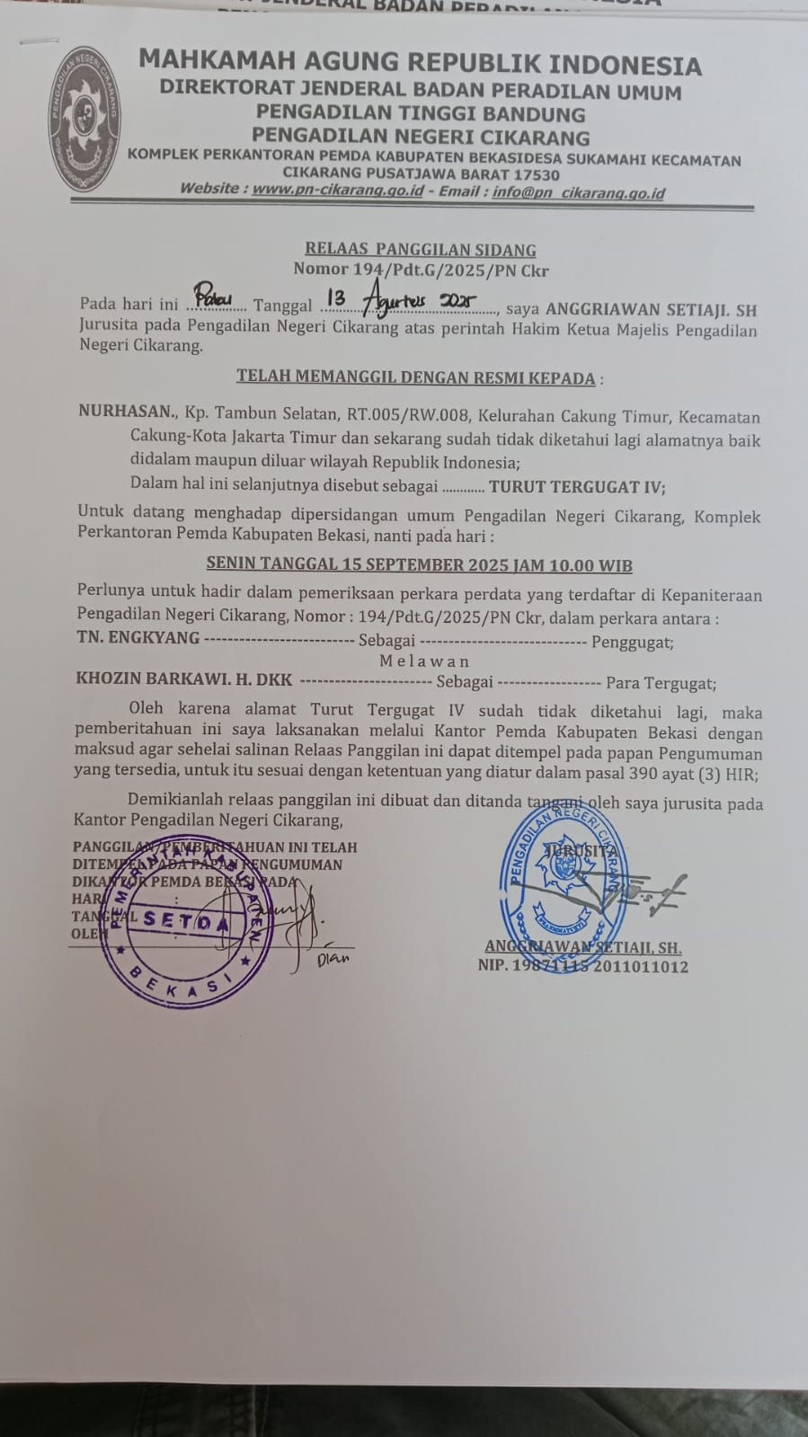Relaas 221/Pdt.G/2025/PN Ckr (Sigit Sri Herlambang - Tergugat IV)