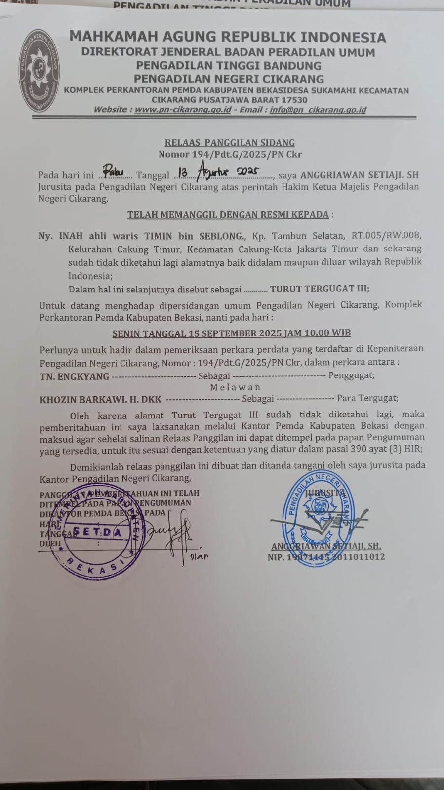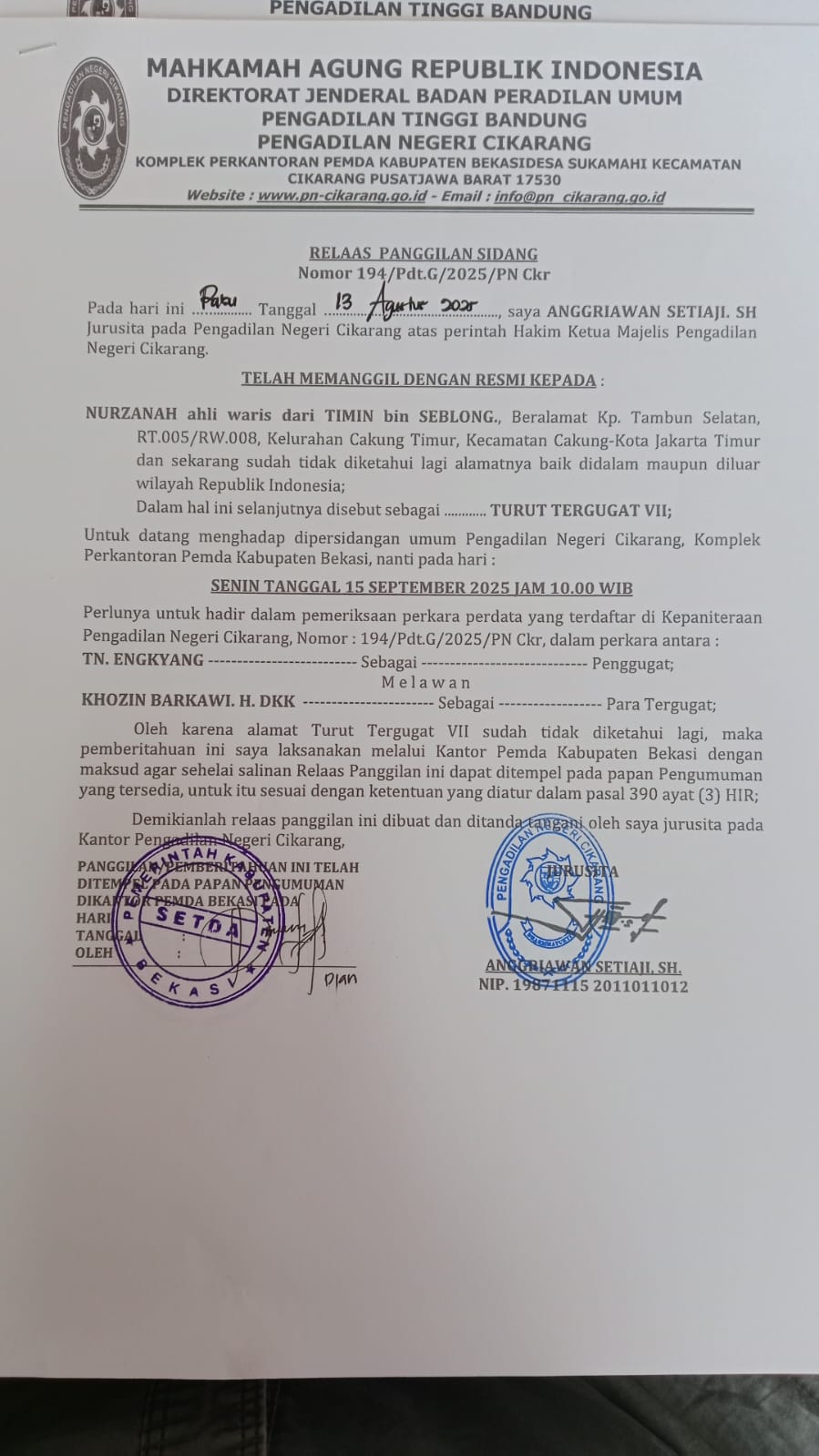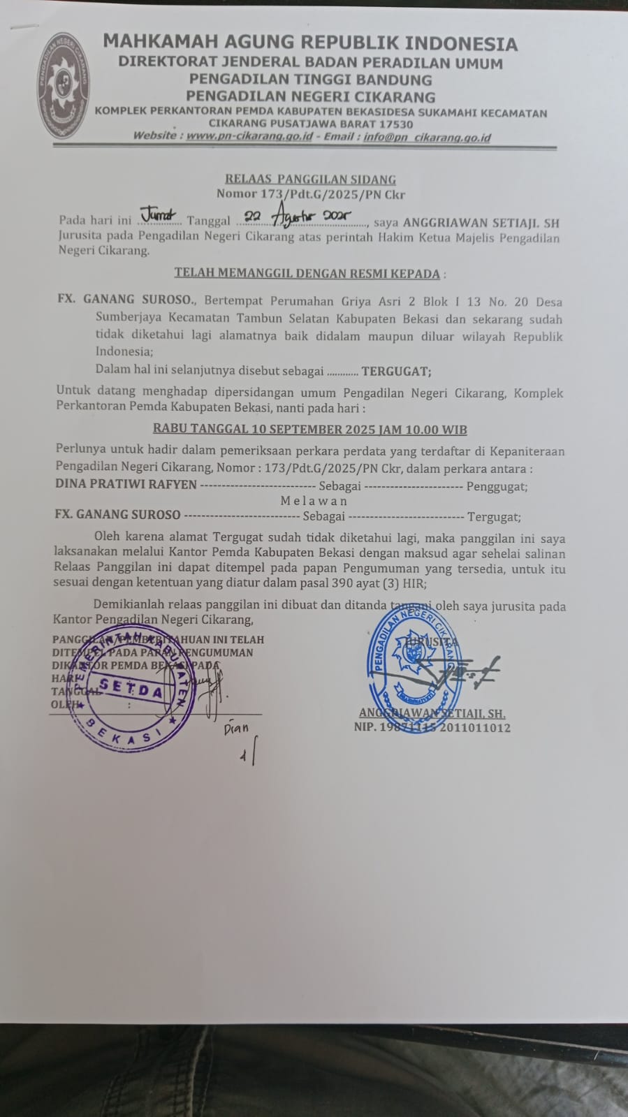 Relaas 221/Pdt.G/2025/PN Ckr (Sigit Sri Herlambang - Tergugat IV)