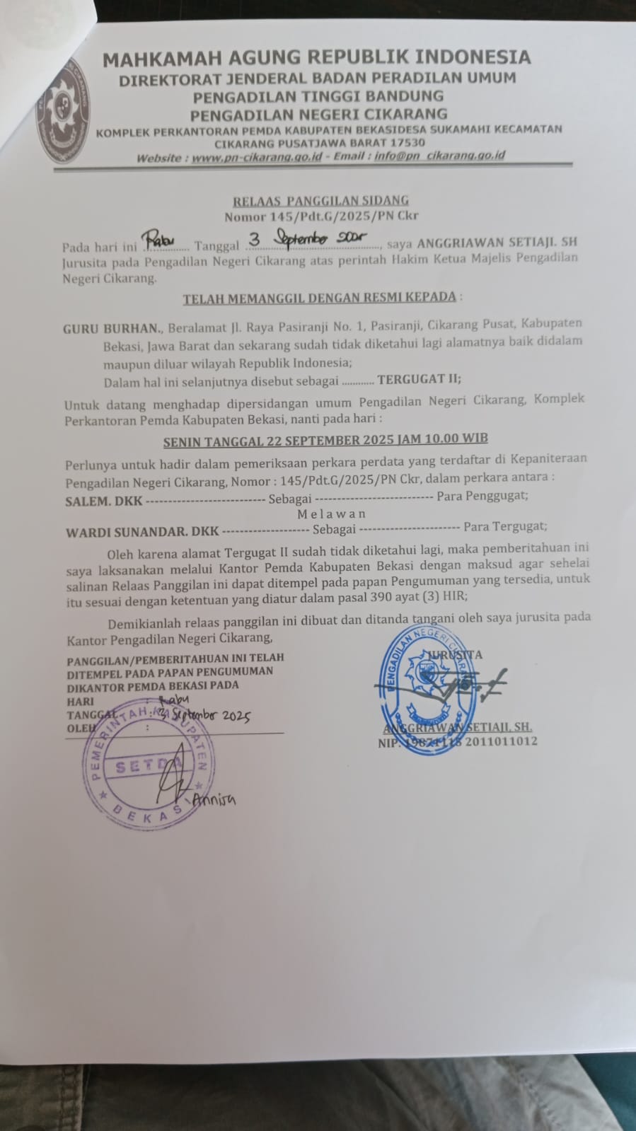 Informasi dan pengumuman resmi dari Pengadilan Negeri Cikarang